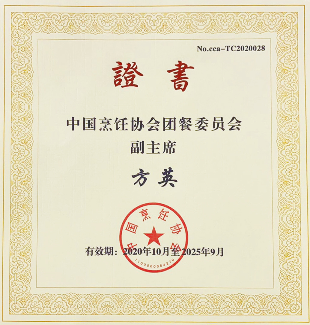• 授予方英女士-中國烹飪協會團餐委員會副主席